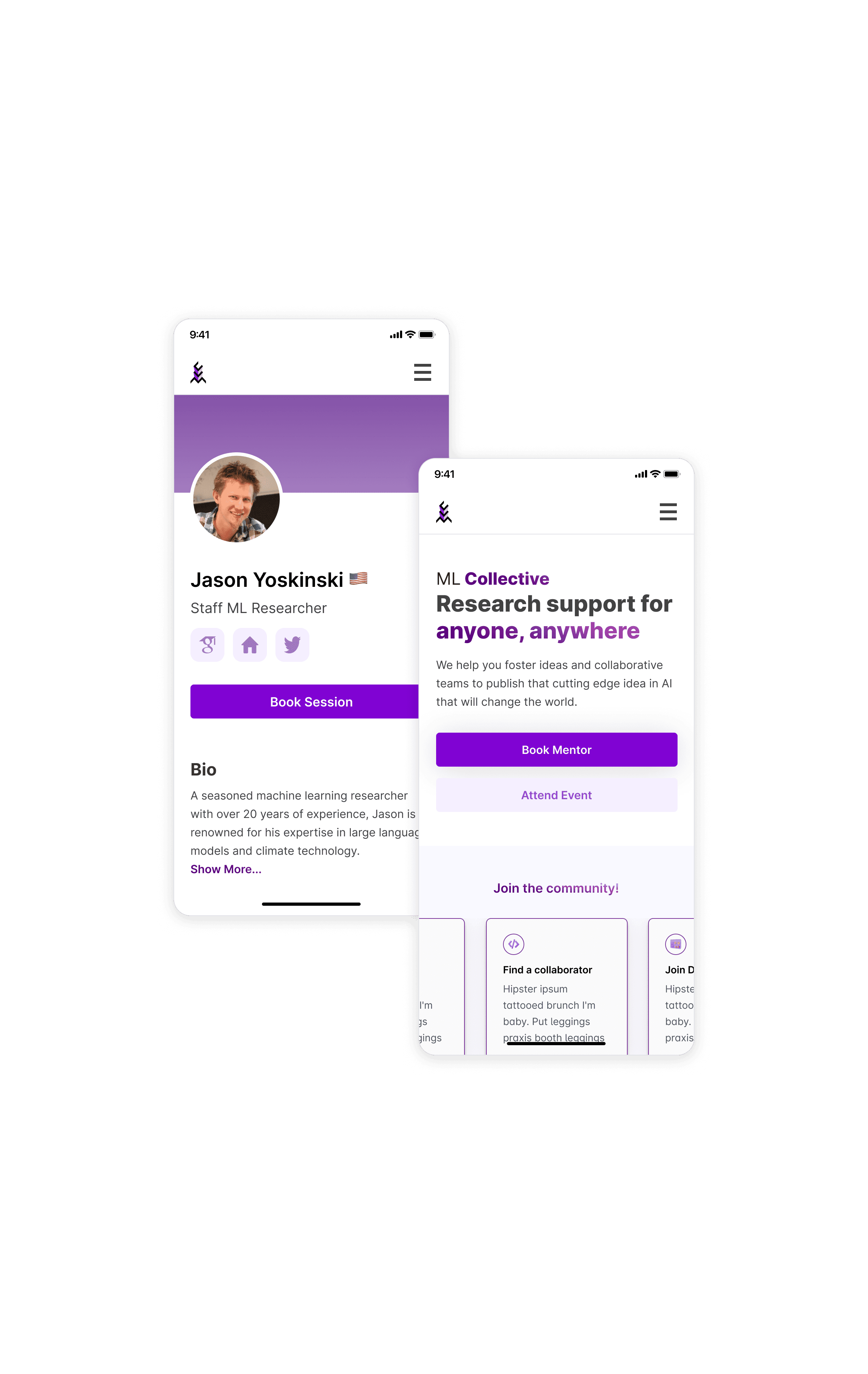 I created engagement loops and new mental models that supported community-driven growth: a mentor booking system, live events hub, research paper matchmaking, and more - all of which were either missing or buried in the original site.